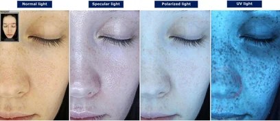 This advanced system analyzes multiple skin concerns, including pores, melanin, pigmentation, wrinkles, redness, texture, and overall skin tone, using four LED light sources and fourteen analysis modes.